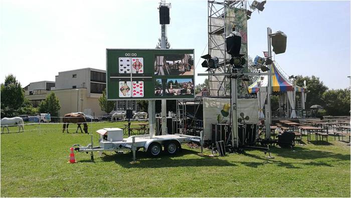 Nedávno jsme postavili venkovní LED stěnu P5, kterou jsme instalovali na mobilní přívěs pro švýcarského klienta. Zapouzdřené LED diody Nationstar ve zlatém drátu, integrovaný obvod MBI5151 s vysokou obnovovací frekvencí, hliníková skříň a napájecí zdroj Meanwell. Díky LED stěně sestavené z těchto nejkvalitnějších surovin a komponentů byl zákazník docela spokojený s úžasným výkonem ledového mobilního přívěsu.